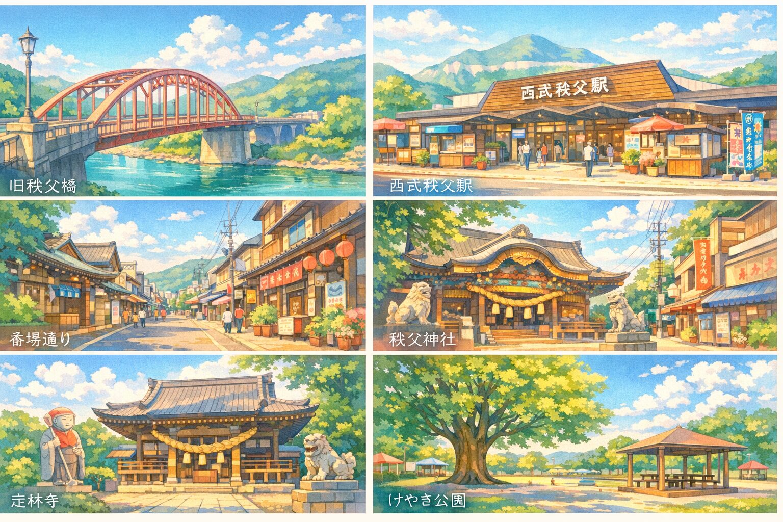 象徴的な「旧秩父橋」は、オープニングや重要なシーンで何度も登場し、ファンの間では聖地中の聖地として知られています。